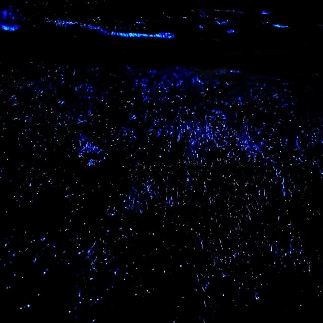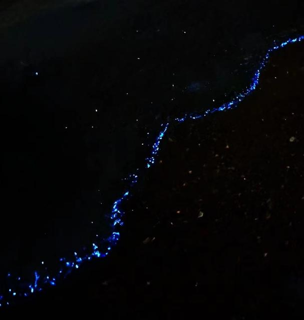 首先,藍眼淚景觀極具震撼力。在漆黑的夜晚,海面上的藍色光芒猶如繁星點點,璀璨奪目。這些光芒在海浪的涌動下跳躍、閃爍,仿佛在為大海披上一層神秘的面紗。站在岸邊,看著這片星海,人們仿佛置身于一個夢幻般的世界,所有的煩惱和疲憊都在這一刻被拋諸腦后。